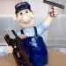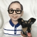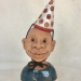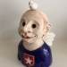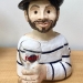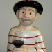 Zwemmer met vis op hoofd en in het water.Vast op sokkel van keramiek.
